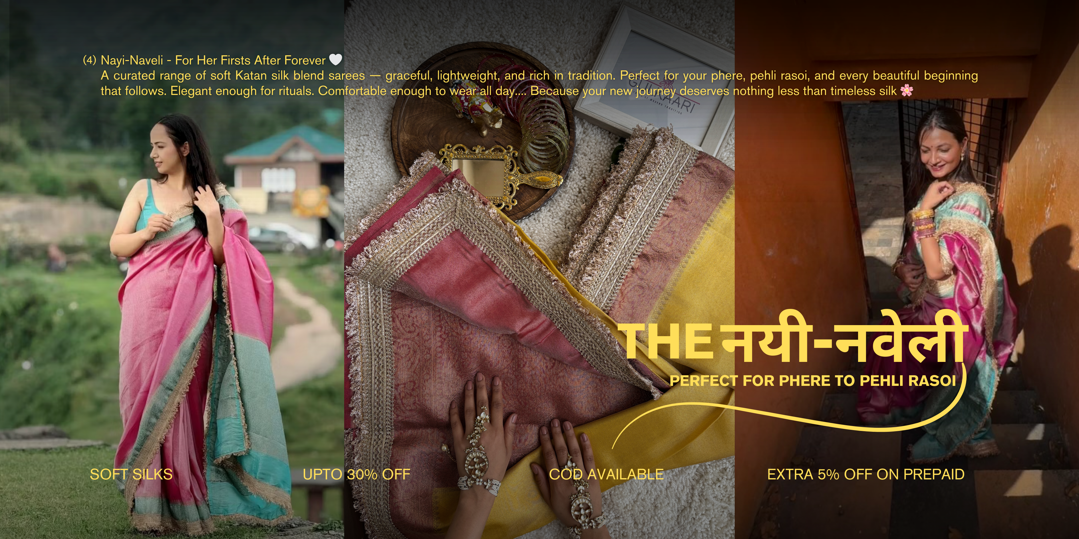 "Feather-light. Sheer Elegance. Timeless Kora Organza — for every celebration"